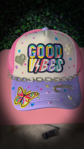 Good Vibes Custom Rhinestone Embellished Hat – Bold & Vibrant Design