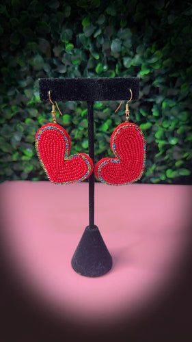 Handcrafted Beaded Red Heart Statement Earrings